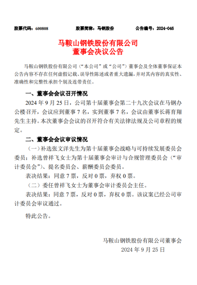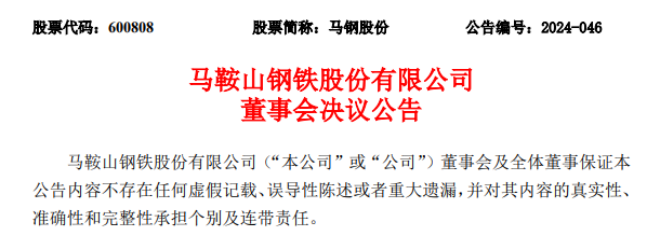 9月25日,馬鋼股份發布了《馬鞍山鋼鐵股份有限公司董事會決議公告》(以下簡稱《公告》)。