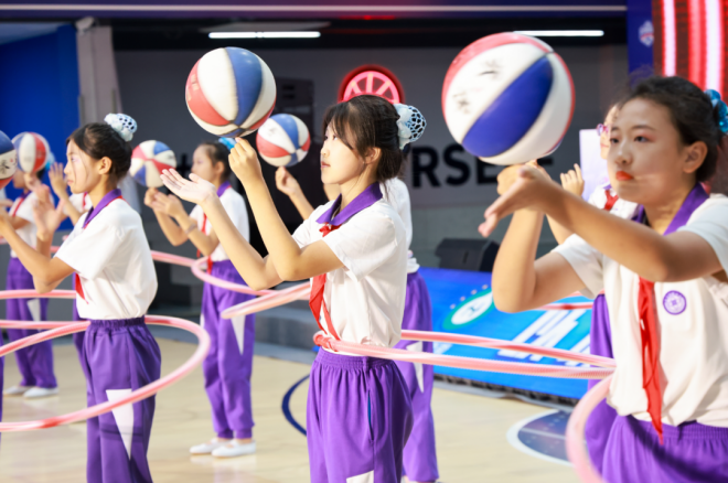 出征儀式在開發區國際學校帶來的7人小合唱中拉開帷幕。葛沽實驗小學孩子們精彩的趣味籃球操將現場氣氛推向了一個小高潮。