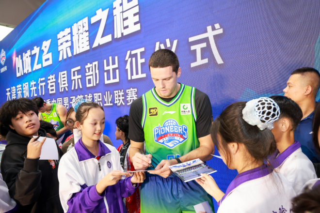 10月9日,2024-2025賽季CBA聯賽天津先行者出征儀式在1895·文化潮動公園Fe Center籃球中心舉行。