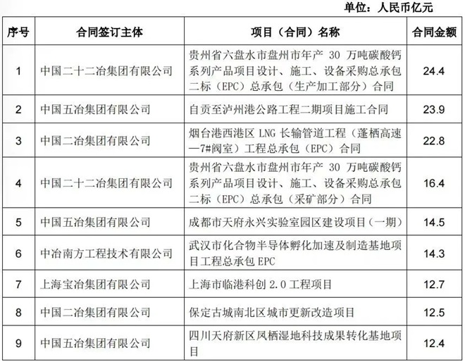 9月份,中國中冶部分新簽單筆合同額在人民幣10億元以上的重大工程承包合同如下——