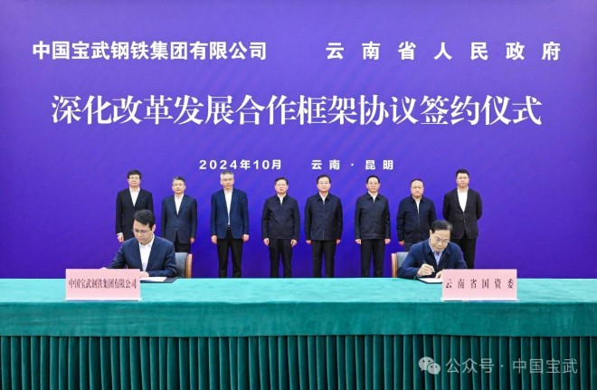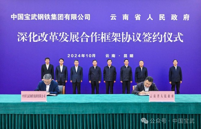 10月26日,中國(guó)寶武與云南省人民政府深化改革發(fā)展合作框架協(xié)議在昆明簽訂。根據(jù)協(xié)議,雙方將同向發(fā)力,共同推進(jìn)企業(yè)改革發(fā)展。寶武將充分發(fā)揮管理、技術(shù)、人才和品牌優(yōu)勢(shì),支持武昆股份逐步成為產(chǎn)業(yè)鏈完整、運(yùn)行順暢、競(jìng)爭(zhēng)力強(qiáng)的鋼鐵企業(yè)。云南省委書記、省人大常委會(huì)主任王寧,省委副書記、省長(zhǎng)王予波,省委常委、省委秘書長(zhǎng)邱江;寶武黨委書記、董事長(zhǎng)胡望明出席簽約儀式。云南省副省長(zhǎng)王浩,寶武總經(jīng)理、黨委副書記侯安貴分別代表雙方簽署深化改革發(fā)展合作框架協(xié)議。