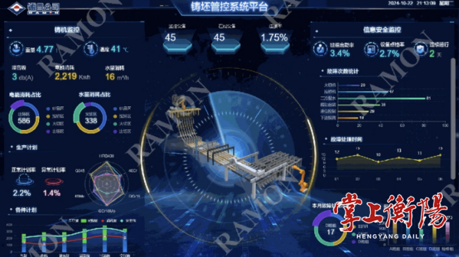 如今,在衡陽鐳目的運維室內(nèi),大屏幕上實時顯示某金屬冶煉企業(yè)智能連鑄機(jī)的運行情況,溫度、振動率、鋼水成分等生產(chǎn)數(shù)據(jù)實時自動收集、分析,出現(xiàn)超過規(guī)定的誤差就會自動報警和調(diào)整生產(chǎn)工序,確保生產(chǎn)過程符合產(chǎn)品工藝的要求。同時還能根據(jù)鋼水成分的改變,自動改變智能連鑄機(jī)的生產(chǎn)工藝,實現(xiàn)生產(chǎn)工藝無縫轉(zhuǎn)換。