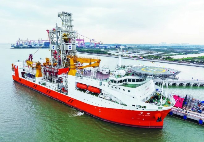 據了解,“夢想”號大洋鉆探船是黨中央部署的一項重大科技創新工程,總體裝備和綜合作業能力處于國際領先水平,承載著中華兒女建設海洋強國的夢想、承載著全球科學家“打穿莫霍面、進入上地?!钡膲粝?。“夢想”號大洋鉆探船總噸約33000,排水量42600噸,續航力15000海里,最大鉆深11000米,具備全球海域無限航區作業能力。