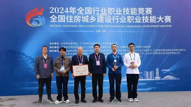 2024年全國行業職業技能競賽——全國住房城鄉建設行業職業技能大賽 中國二十二冶冶金公司員工曹發賓榮獲砌筑工賽項個人三等獎(左二為選手曹發賓)。