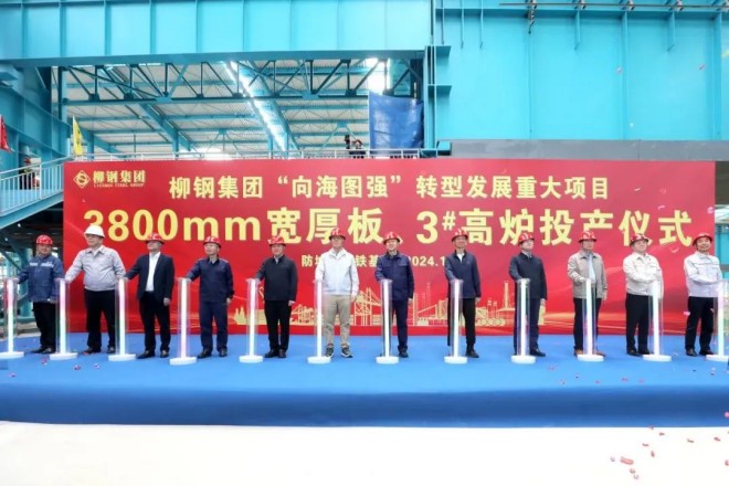 11月26日,柳鋼集團舉行“向海圖強”轉型發展重大項目——防城港鋼鐵基地3800mm寬厚板、3號高爐投產儀式。標志著柳鋼集團“高端化、智能化、綠色化”轉型發展取得重大突破,填補了廣西寬厚板產品生產空白,防城港千萬噸級鋼鐵基地(一期)全面建成,為全區工業振興注入強大鋼鐵動能。