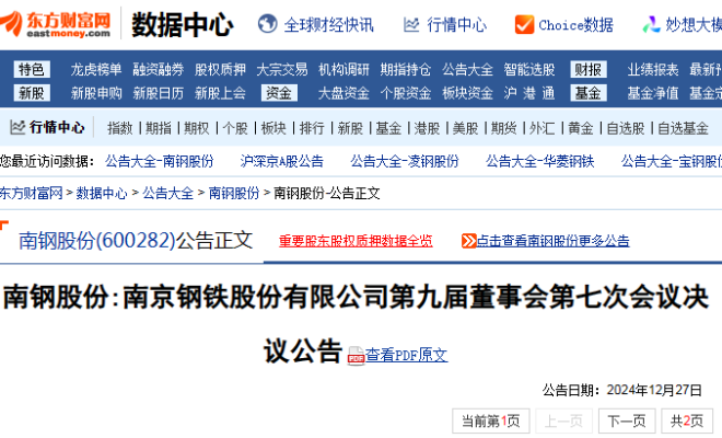 12月27日,南鋼股份發布了《南京鋼鐵股份有限公司第九屆董事會第七次會議決議公告》。