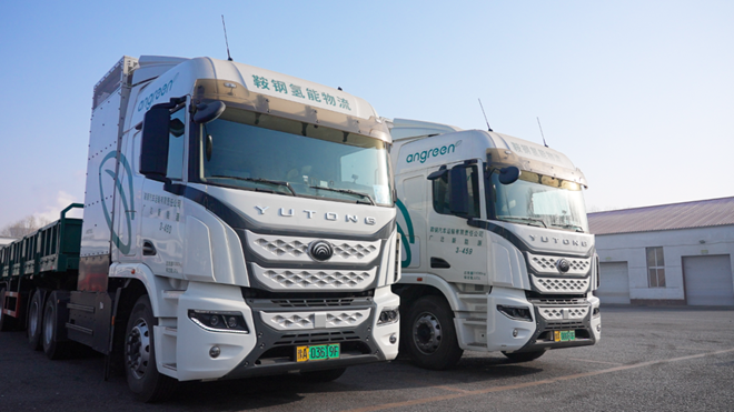 近年來,鞍山鋼鐵深入學習貫徹習近平生態文明思想,以打造“綠色發展領先型企業”為目標,積極踐行綠色低碳發展理念,提升清潔運輸比例,在超低排放改造中深入推進清潔運輸改造工程,助力鞍鋼集團實現“碳達峰、碳中和”的宏偉愿景,加快綠色鞍鋼建設。根據《遼寧省氫能產業發展規劃(2021-2025年)》以及“打造沈大高速氫走廊”的具體要求和戰略部署,鞍山鋼鐵于今年12月投入2臺氫能重卡,應用于鞍山鋼鐵本部和鲅魚圈之間的集港運輸路線。據介紹,該條路線貨源穩定且路線固定,單次往返距離約為320公里,在氫能重卡的續航能力范圍內。此外,集港路線還涵蓋了沈大高速公路鞍山至鲅魚圈的路段,與遼寧省“打造沈大高速氫走廊”的戰略高度契合。
