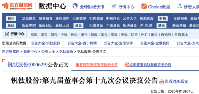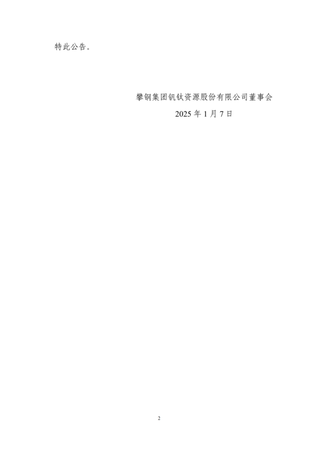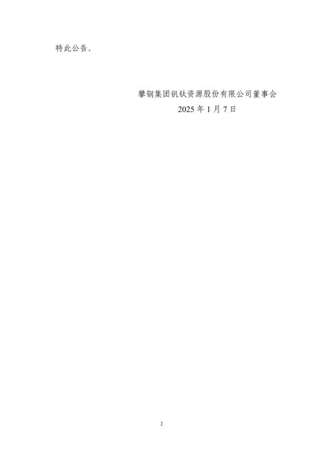 1月7日,攀鋼集團釩鈦資源股份有限公司(以下簡稱“釩鈦股份”)發布多篇公告。