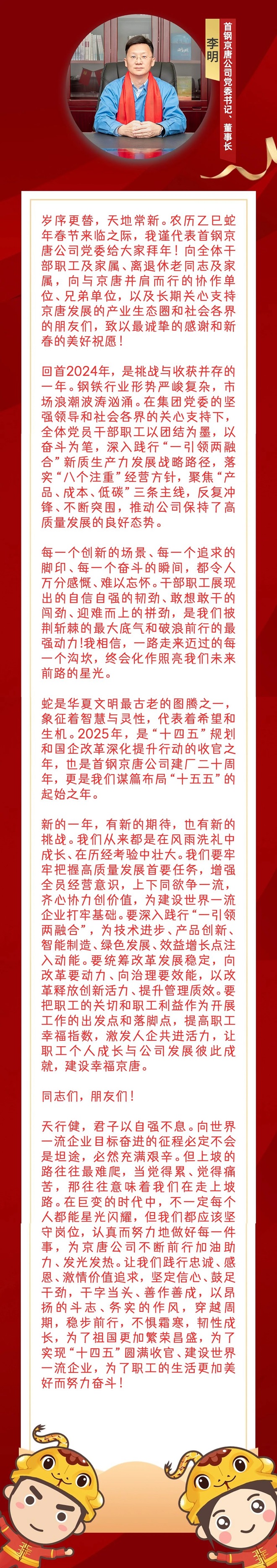 新春賀詞 | 首鋼京唐公司黨委書記、董事長(zhǎng)李明新春賀詞