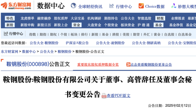 2月12日,鞍鋼股份發布《關于董事、高管辭任及董事會秘書變更公告》。