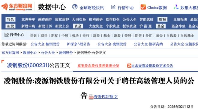 2月12日,凌鋼股份發布《關于聘任高級管理人員的公告》。