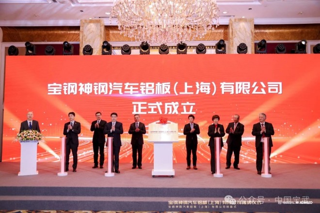 2月13日,寶鋼股份、寶武鋁業與神戶制鋼聯合成立寶鋼神鋼汽車鋁板(上海)有限公司(以下簡稱“寶神鋁板”),揭牌儀式在上海舉行。揭牌儀式上介紹了寶神鋁板管理團隊、營銷模式及未來發展構想。寶山區委書記李晨昊,中國寶武黨委常委、寶鋼股份黨委書記、董事長鄒繼新,神戶制鋼代表取締役社長勝川四志彥出席發布會并致辭,寶鋼股份副總經理、寶神鋁板董事長吳軍主持儀式。