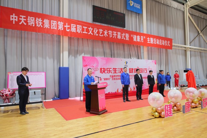 3月7日上午,中天鋼鐵集團以“快樂生活,健康同行”為主題的第七屆職工文化藝術節正式開幕,同步啟動企業2025年“健康月”主題活動,奏響關愛職工身心健康的春日序曲。現場,中天鋼鐵集團及公司領導李軍、許九華、吳獻陽、葉玉奎手持“啟動簽”,共同啟動2025年“健康月”主題活動。