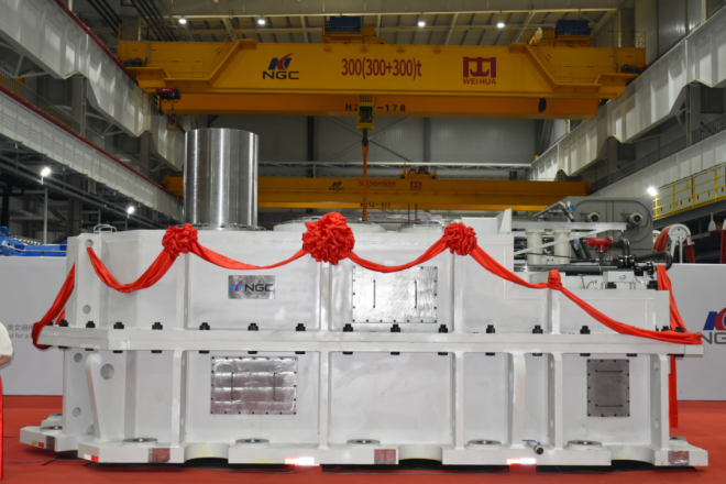 暮春的淮安碧波瀲滟,機械交響與春意同頻共振。4月1日,南京高精齒輪集團有限公司(以下簡稱“南高齒”)22米輾環機主齒輪箱下線儀式在淮安金湖成功舉行。公司總經理、工業事業部總裁丁元興與產業鏈合作伙伴代表共同見證這一重要時刻,標志著我國在超大型環件精密軋制裝備領域取得重大突破。
