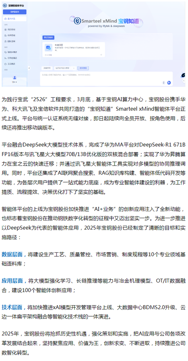 踐行“2526”工程,寶鋼版DeepSeek上線啦