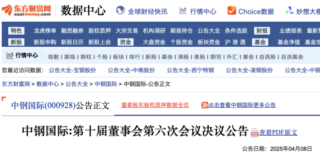 4月8日,中鋼國際發布《第十屆董事會第六次會議決議公告》。
