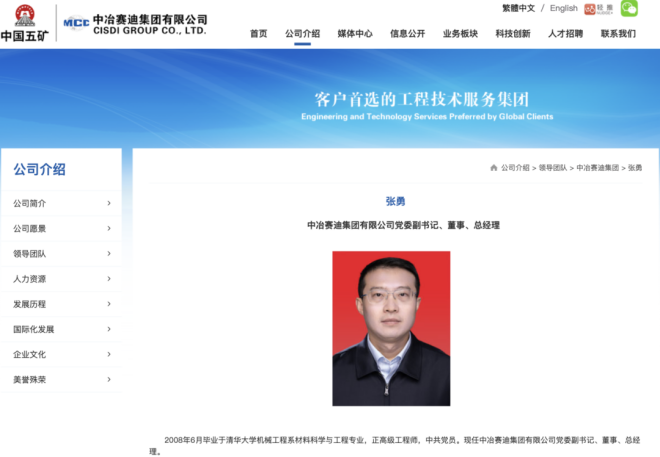 據中冶賽迪官網顯示,集團管理團隊日前發生變動。張勇已擔任中冶賽迪集團有限公司黨委副書記、董事、總經理。