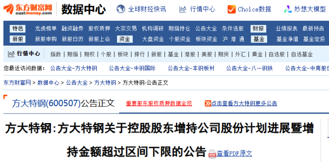 4月10日,方大特鋼發(fā)布了《方大特鋼科技股份有限公司關(guān)于控股股東增持公司股份計劃進展暨增持金額超過區(qū)間下限的公告》(以下簡稱《公告》)。