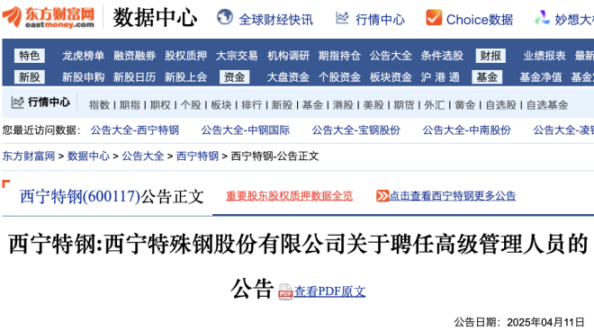 4月11日,西寧特鋼發布《關于聘任高級管理人員的公告》。