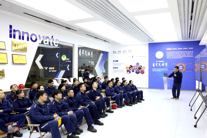 ▲3月18日,朱旋在冷軋廠數(shù)智沙龍活動上,為青年職工科普AI知識并解答相關(guān)技能問題