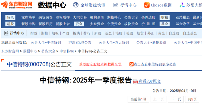 4月19日,中信特鋼發(fā)布了2025年第一季度報(bào)告。