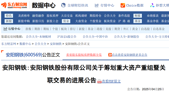4月25日,安陽鋼鐵發布了關于籌劃重大資產重組暨關聯交易的進展公告。