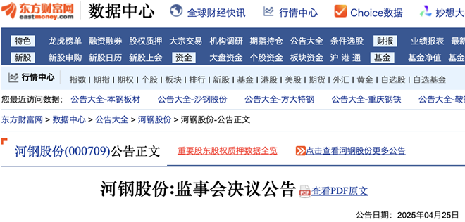 4月25日,河鋼股份發布《河鋼股份有限公司五屆十一次監事會決議公告》。