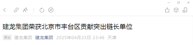 近日,建龍集團(tuán)公眾號發(fā)布了《建龍集團(tuán)榮獲北京市豐臺區(qū)貢獻(xiàn)突出鏈長單位》一文。