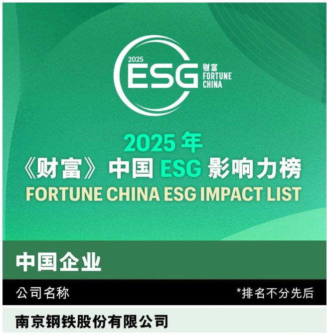 5月16日,2025年《財(cái)富》中國ESG影響力榜單揭曉,南鋼股份從近300家參評企業(yè)中脫穎而出,連續(xù)兩年登榜。本次榜單共有100家企業(yè)上榜,南鋼股份是鋼鐵行業(yè)唯一上榜企業(yè)。