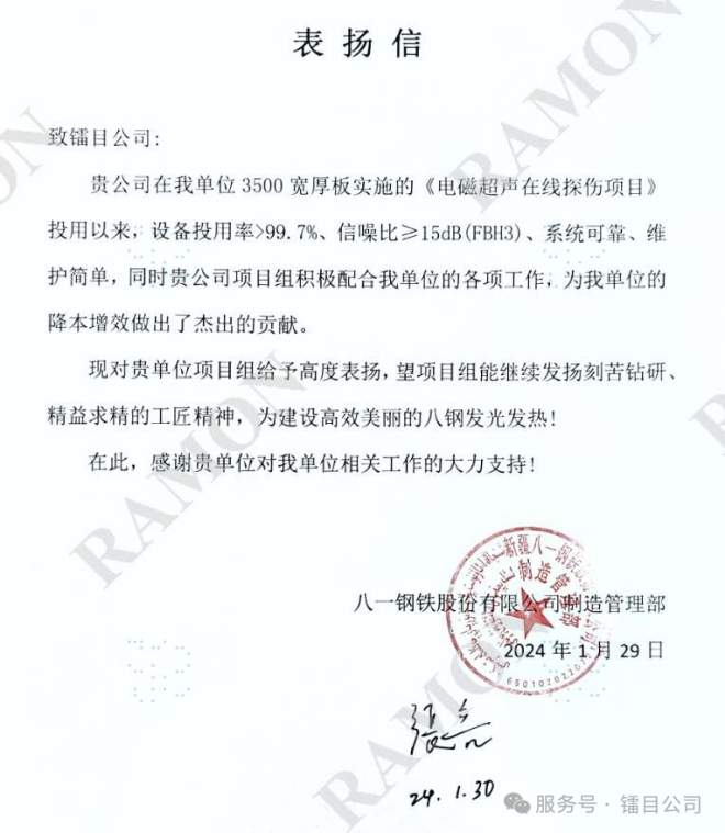 為什么是鐳目?雙方的合作本質是一筆“算明白的生意賬”。只有鐳目的電磁超聲中厚板智能探傷系統能夠直擊客戶痛點,助力周鋼用最少的錢,賺最多的利潤,在未來搶占最多的市場,實現真正長遠的效益。