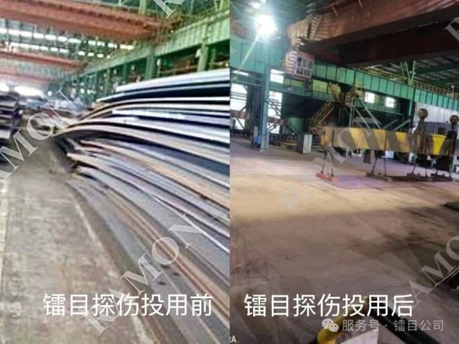 (鐳目電磁超聲中厚板智能探傷系統投用前后工廠現狀對比圖)