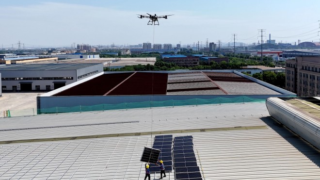 “單架無人機(jī)每小時可完成近50塊光伏組件的精準(zhǔn)吊運(yùn)安裝,施工效率較人工提升超5倍?!比涨?,在中國資環(huán)歐冶鏈金所屬企業(yè)馬鋼利華當(dāng)涂中心基地,無人機(jī)吊運(yùn)安裝光伏組件的場景成為一道獨(dú)特風(fēng)景,該項目負(fù)責(zé)人介紹,數(shù)架搭載光伏組件的無人機(jī)穿梭于17000平方米的廠房屋頂,推動1.5MW屋頂分布式光伏電站項目建設(shè)步入“快車道”。