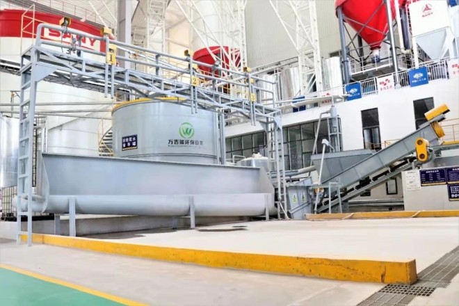 中國二十二冶雄安容西1號混凝土攪拌站采用全封閉生產、集中除塵、清潔能源、地源熱泵等國內先進設備及工藝,保證固廢、廢氣、污水真正實現“零排放”。通過“六大系統”(抑塵系統、中水處理系統、雨水收集系統、砂石分離系統、地源熱泵系統、除塵系統),具備“六大亮點”(瀝青煙氣全分解、廢水廢料全回收、粉塵收集零排放、生產噪聲全隔離、智能設備全節能、花園工廠零污染),形成了“封閉生產、先進儲料、綠色零排、智能控制、超低能耗、全程質保”的綠色生產體系,既保證了大規模建設的原料供給,又為“綠色雄安”保駕護航。