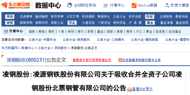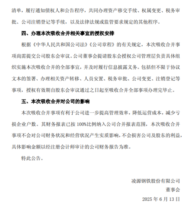 6月13日,凌鋼股份發布了《凌源鋼鐵股份有限公司關于吸收合并全資子公司凌鋼股份北票鋼管有限公司的公告》(以下簡稱《公告》)。