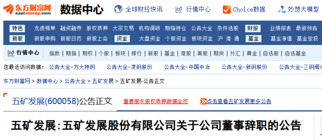 6月28日,五礦發(fā)展發(fā)布了《五礦發(fā)展股份有限公司關(guān)于公司董事辭職的公告》。