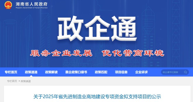 近日,湖南省人民政府網站發布了《關于2025年省先進制造業高地建設專項資金擬支持項目的公示》(以下簡稱《公示》)。