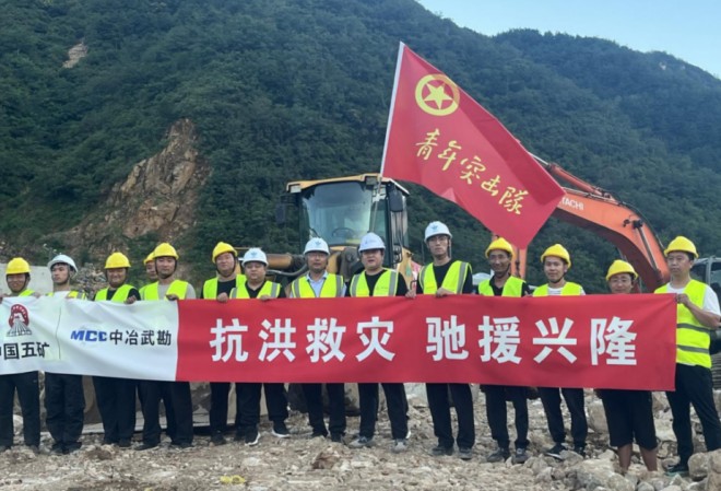 8月5日深夜,接到救援指令后,中冶武勘第一時間啟動應急預案,緊急調配挖掘機、裝載機、壓路機等十幾臺大型機械設備,并迅速從就近項目中抽調出一批技術精湛、經驗豐富的專業人員,組成抗洪搶險救援隊,連夜奔赴受災嚴重的興隆縣陡子峪鄉與當地干部群眾并肩作戰,全力投入到抗洪搶險工作中。