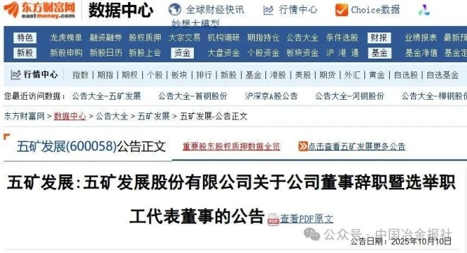 10月10日,五礦發展發布公告,五礦發展股份有限公司董事會于近日收到董事魯輝先生提交的辭職報告,由于公司工作安排原因,魯輝先生申請辭去公司第十屆董事會董事、董事會提名委員會委員職務。 根據相關規定,魯輝先生的辭職報告自送達公司董事會時生效。