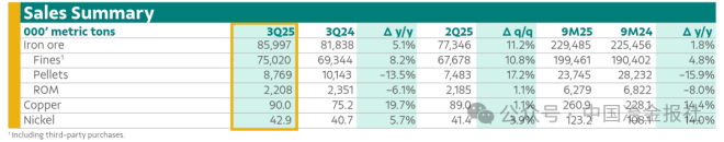 10月22日,淡水河谷官方微信公眾號(hào)發(fā)布2025年第三季度產(chǎn)銷量報(bào)告。
