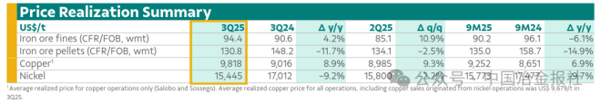 2025年第三季度,淡水河谷取得強(qiáng)勁運(yùn)營業(yè)績。鐵礦石業(yè)務(wù)方面,產(chǎn)量達(dá)到2018年以來最高水平,價(jià)格實(shí)現(xiàn)亦有所改善。銅業(yè)務(wù)方面,薩洛博(Salobo)運(yùn)營區(qū)實(shí)現(xiàn)同比增長,多金屬資產(chǎn)表現(xiàn)穩(wěn)健。鎳業(yè)務(wù)方面,薩德伯里(Sudbury)運(yùn)營區(qū)礦石產(chǎn)量同比增長45%,昂薩布瑪(On?a Puma)運(yùn)營區(qū)2號(hào)熔爐投入運(yùn)營,為后續(xù)季度的產(chǎn)量增長奠定了基礎(chǔ)。三項(xiàng)業(yè)務(wù)均朝著2025年產(chǎn)量指導(dǎo)區(qū)間的上限推進(jìn)。
