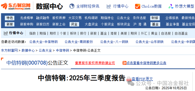 10月25日,中信特鋼發布《2025年三季度報告》。