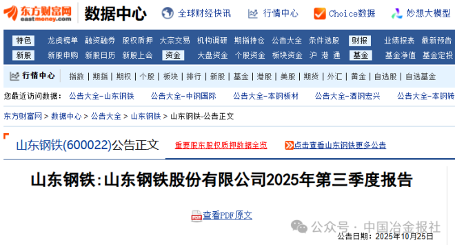 10月25日,山東鋼鐵發布《山東鋼鐵股份有限公司2025年第三季度報告》。