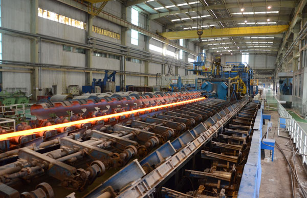 圖為太鋼一次熱成型生產的27米超長不銹鋼管。(呂茹 攝)