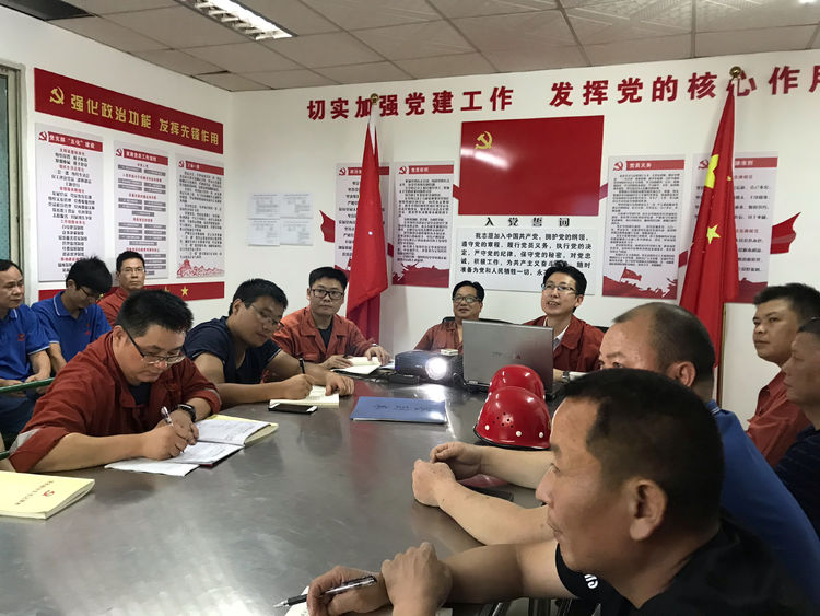 圖為華菱漣鋼210轉(zhuǎn)爐廠精煉車間黨支部開展的“不忘初心、牢記使命”主題教育專題黨課。