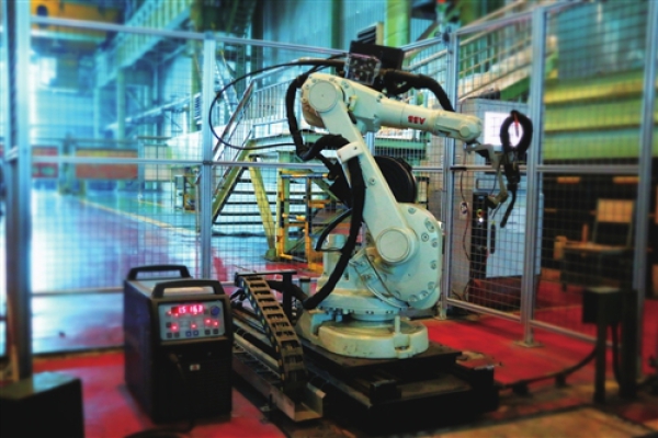 圖為碳鋼冷軋鋼卷自動焊接機(jī)器人。 李朝婷 攝