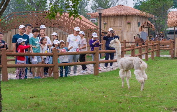 而后,大家分乘旅游觀光車(chē),駛向生態(tài)園,與動(dòng)物零距離接觸。伸手摸摸溫馴的矮馬,和萌萌的羊駝打個(gè)招呼,看小松鼠上竄下跳,都讓大家開(kāi)心、興奮不已。第一次迎來(lái)這么多游客,美麗的梅花鹿略顯緊張、羞澀,它們警覺(jué)地豎起耳朵,眼見(jiàn)沒(méi)什么“惡意”,一會(huì)兒就放松了警惕,互相追逐起來(lái);在草地上悠閑散步的孔雀最令大家著迷。身為鳥(niǎo)中之王,面對(duì)游人它們毫不怯場(chǎng),自顧自地覓食。一只孔雀甚至罕見(jiàn)地開(kāi)起屏來(lái),昂首挺胸來(lái)回轉(zhuǎn)著,炫耀自己的美麗。