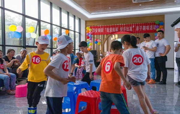 感受鋼鐵工業(yè)的生態(tài)美景后,20個(gè)家庭返回企業(yè)文化展示廳,開(kāi)始親子活動(dòng)。“搶凳子”游戲考驗(yàn)的是快速反應(yīng)能力,音樂(lè)一停,誰(shuí)搶到了凳子就繼續(xù)下一輪,否則遺憾出局。活動(dòng)現(xiàn)場(chǎng),伴隨著動(dòng)感的音樂(lè),大人、小孩分組,四個(gè)組玩下來(lái),整個(gè)現(xiàn)場(chǎng)樂(lè)翻天;“毛毛蟲(chóng)大躍進(jìn)”游戲中,小朋友每五人一組騎在毛毛蟲(chóng)上,從起點(diǎn)至終點(diǎn)往返一次,用時(shí)最短者為勝。游戲過(guò)程中,只見(jiàn)紅、藍(lán)兩條“毛毛蟲(chóng)”在大伙“一、二,加油”的吶喊聲中,加速前行。終點(diǎn)線上,獲勝的一組小朋友開(kāi)心地?fù)湎驄寢尩膽驯В瑵M臉的驕傲。這樣快樂(lè)的時(shí)光家長(zhǎng)們自然不會(huì)錯(cuò)過(guò),不約而同地用手機(jī)記錄下孩子童年的美好。