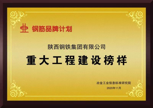 陜鋼集團榮獲“鋼筋品牌計劃——重大工程建設榜樣”企業(yè)榮譽稱號
