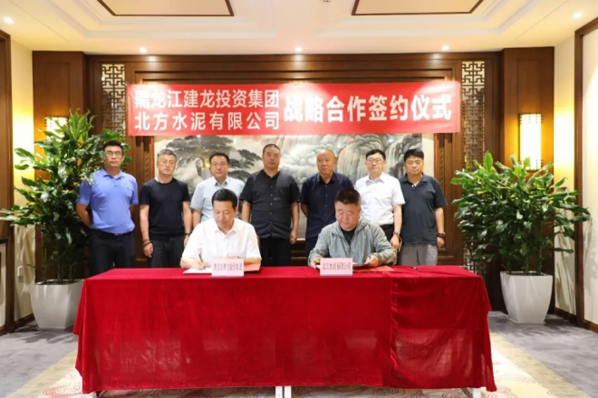 7月9日,黑龍江建龍投資集團與中國建材集團北方水泥有限公司(簡稱北方水泥)在哈爾濱簽署戰(zhàn)略合作協(xié)議。黑龍江建龍投資常務副總經(jīng)理劉鳳和、北方水泥常務副總裁李樹海分別代表雙方簽約。