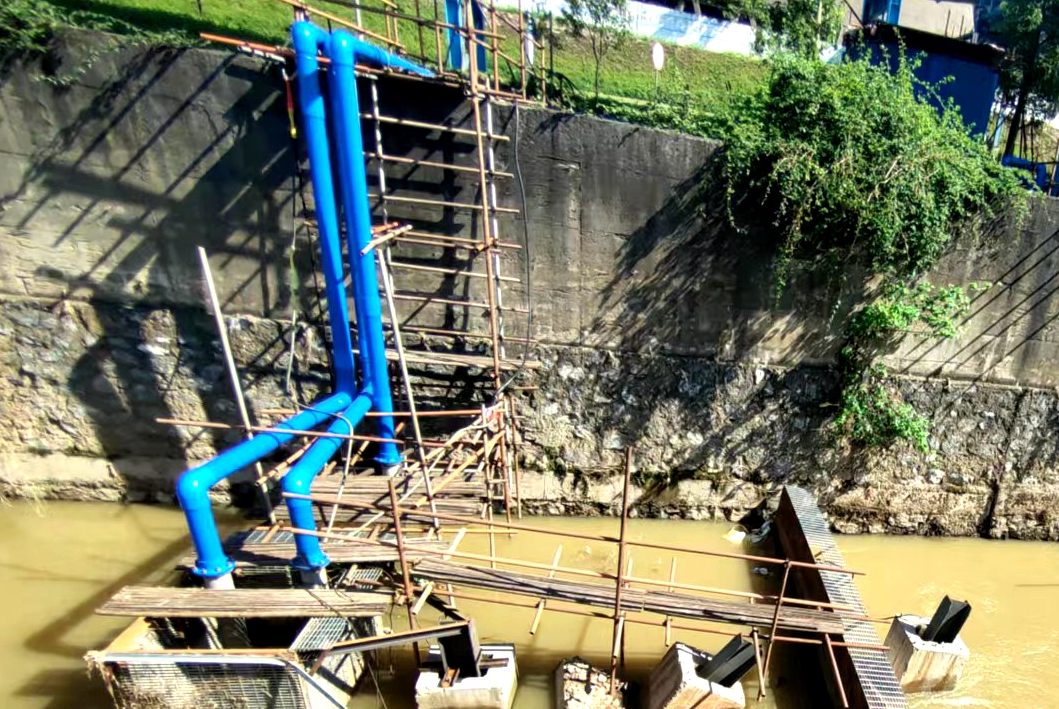 取水梅花河是建廠以來首次嘗試,設備室取水小組無懼困難,不負當下,迅速行動,繞廠區查找取水點,6月23日組織討論并制定韶鋼梅花河取水項目方案。設備部給予大力支持,緊急采購三臺水泵。聽說要用鋼板攔河蓄水,煉鐵廠等單位大力支持,貢獻鋼板、法蘭,各單位紛紛提供所需管道等資源。